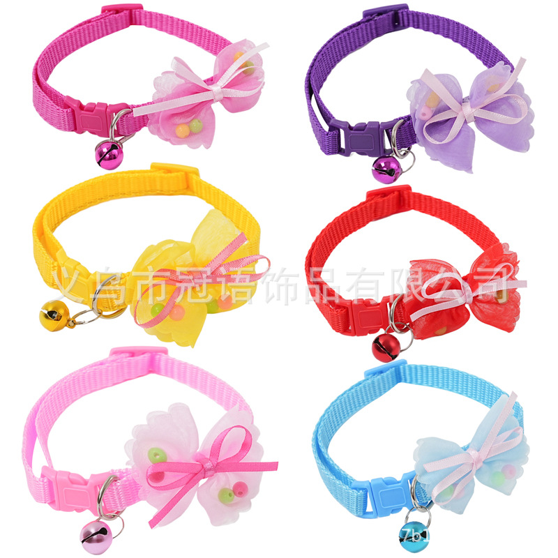 Bubble Bead Bow Pet Dog Collar Cat Sash Small Bell Adjustable 21-33cm Cat Beauty Products Four Seasonal Universal Pet Bow 1PCS