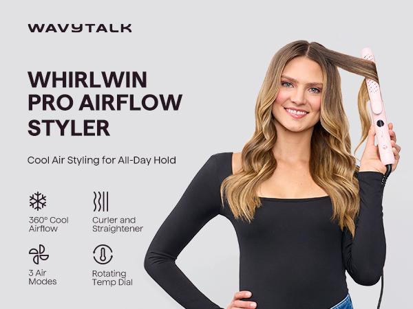 Wavytalk Whirlwind Curl, 360° Airflow Styler with 3 Air Modes & LED Display, 2-In-1 Hair Straightener and Curler with Cooling Air Vents to Lock in Style